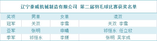 為了豐富員工的文體生活,培養(yǎng)員工的團(tuán)隊(duì)精神,增強(qiáng)員工的凝聚力,促進(jìn)員工之間的友誼,營(yíng)造一個(gè)自信、陽(yáng)光、充滿(mǎn)朝氣的企業(yè)氛圍,在鐵嶺市開(kāi)發(fā)區(qū)總工會(huì)的支持下,遼寧泰威機(jī)械制造有限公司于2022年4月24日在開(kāi)發(fā)區(qū)工人文化宮開(kāi)展了第二屆羽毛球比賽,本次比賽以“文明、友誼、拼搏”為宗旨,秉承著勇攀高峰的精神和參與第一、友誼第一的比賽風(fēng)尚,充分展示著拼搏進(jìn)取的精神風(fēng)貌。